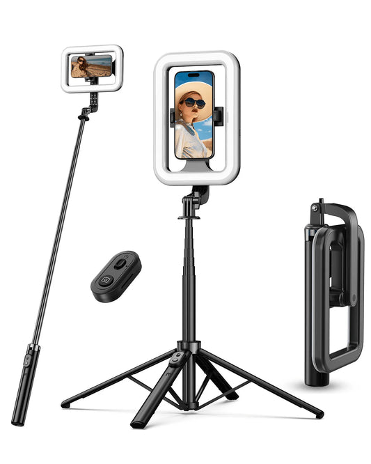 LIMITED TIME 50% OFF!!! Selfie Ring Light with 72" Tripod Stand - Extendable Selfie Stick with Light for Phone, Live Streaming, Makeup, Travel, Gaming, Video, Includes Phone Holder& USB-C Powered - 1-Year Warranty